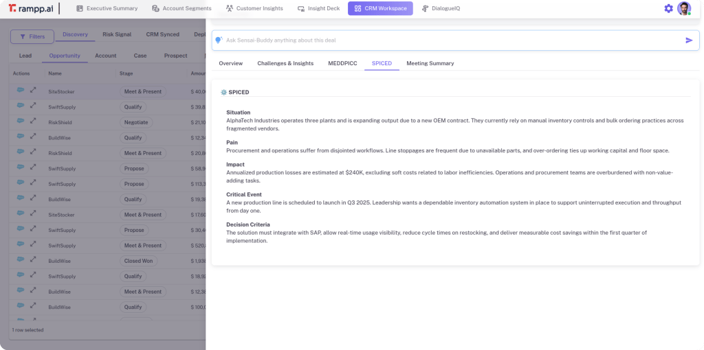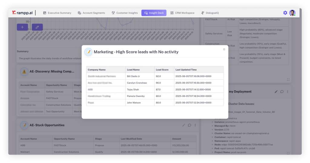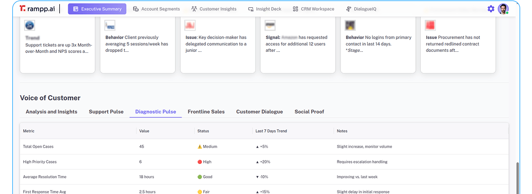 Empower your Customer Success Managers to deliver proactive post-sale support with AI-driven insights. CSM Agent continuously monitors account health, flags upsell and expansion opportunities and analyzes usage patterns to surface actionable recommendations. Strengthen customer relationships, drive retention, and uncover new growth avenues—all through intelligent automation and real-time data.
