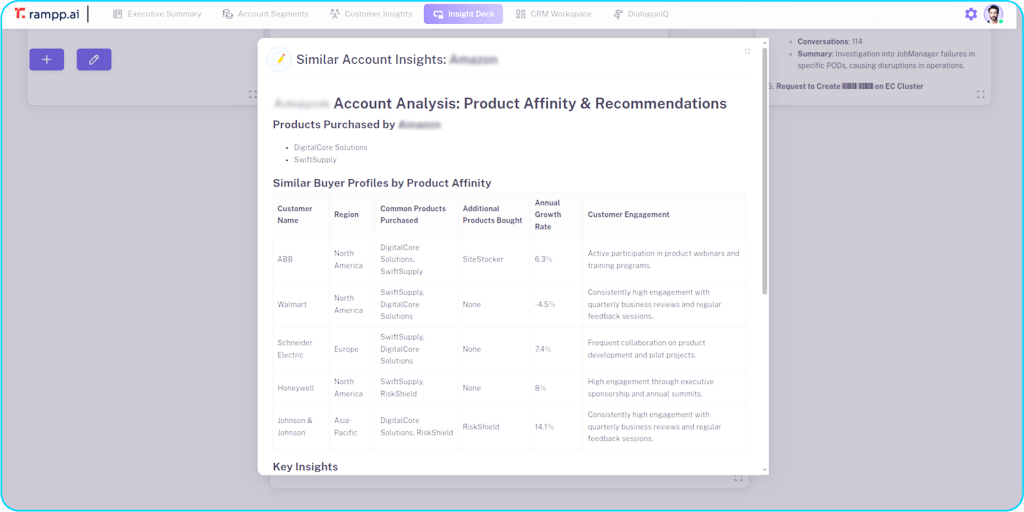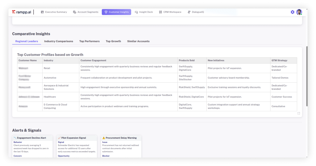 Stay ahead with real-time strategic insights that help you navigate market challenges and gain a competitive edge. Leadership Agent uncovers what’s driving success in your top accounts and delivers actionable recommendations to expand and grow your portfolio. Seamlessly integrate the voice of the customer with deep market intelligence, empowering you to lead your growth initiatives with confidence and clarity.